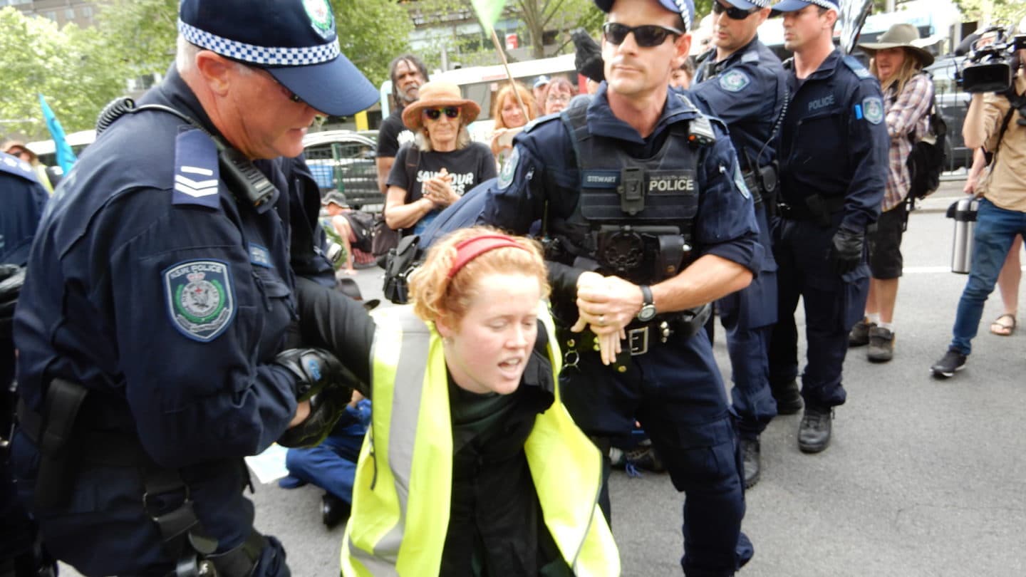 I have had firsthand experience, being held in custody for 27 hours for peacefully protesting on a city street. I was arrested with 37 others and taken to Surry Hills police station in Sydney, where we were charged with the very minor offence of refusing to comply with a police direction. The cops refused to release us unless we agreed to bail conditions restricting our basic civil liberties, including a ban on speaking to other Extinction Rebellion “members” (there is no formal membership) and a ban on attending any Extinction Rebellion protests – violations of our right to freedom of political association. They also tried to create a 2.5 kilometre exclusion zone around central Sydney.