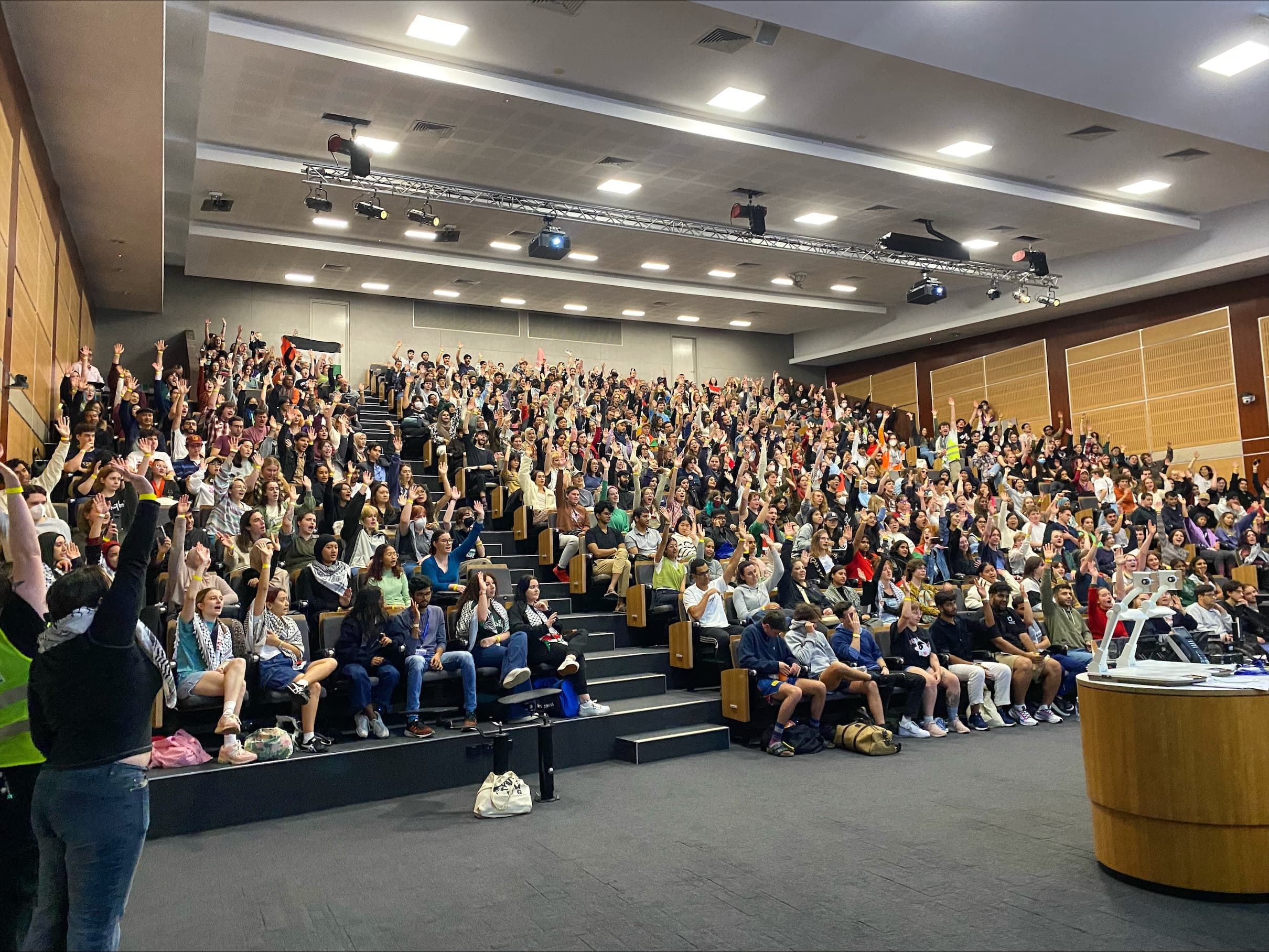 More than 1,500 students attended a student general meeting at the University of Queensland (UQ) on 29 May, the largest student meeting in Australia in decades. The meeting voted overwhelmingly to stand in solidarity with Palestine and against university cooperation with Israel and the weapons companies that are enabling and profiting from Israel’s genocide in Gaza.