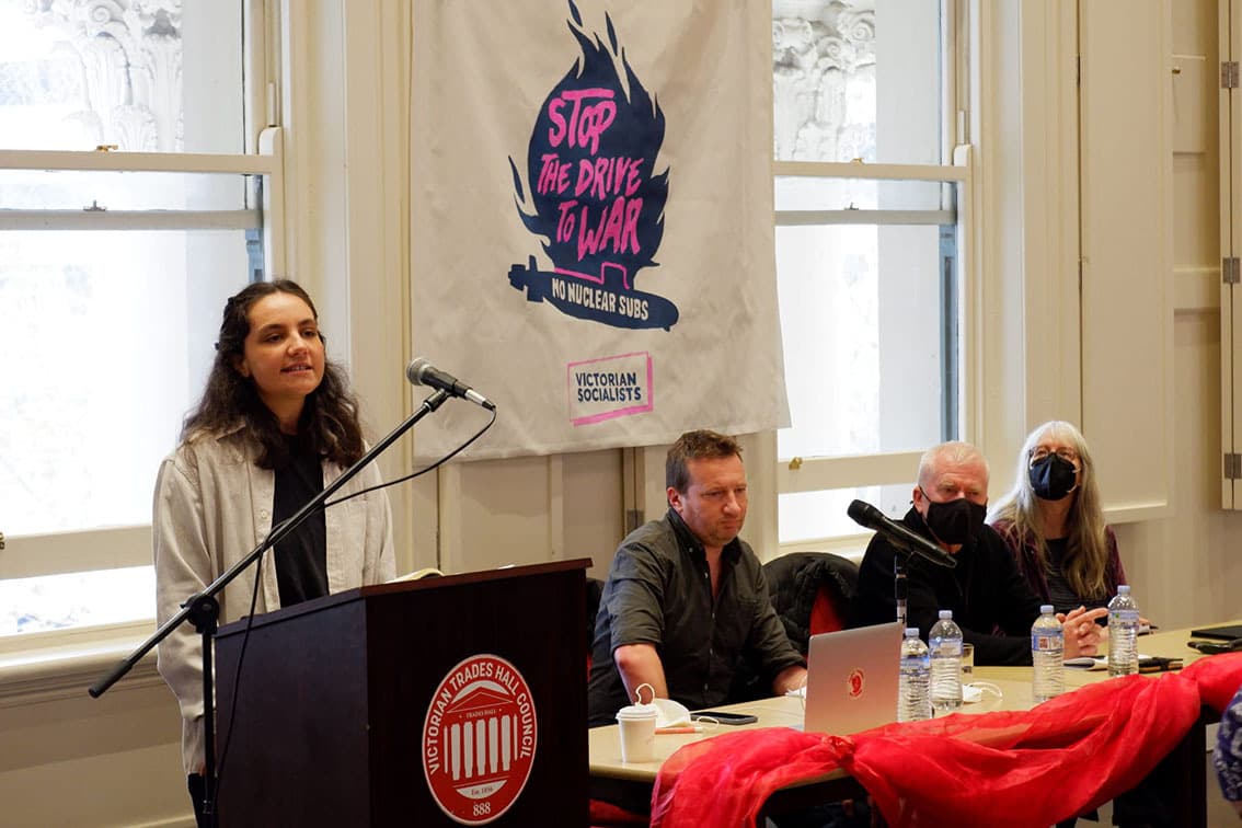 The Victorian Socialists hosted a forum, Stop the Drive to War, at Melbourne’s Trades Hall on 3 June to try to build a coalition against the militarisation of Australia, the expansion of the nuclear industry, and the AUKUS deal and drive to war with China.
