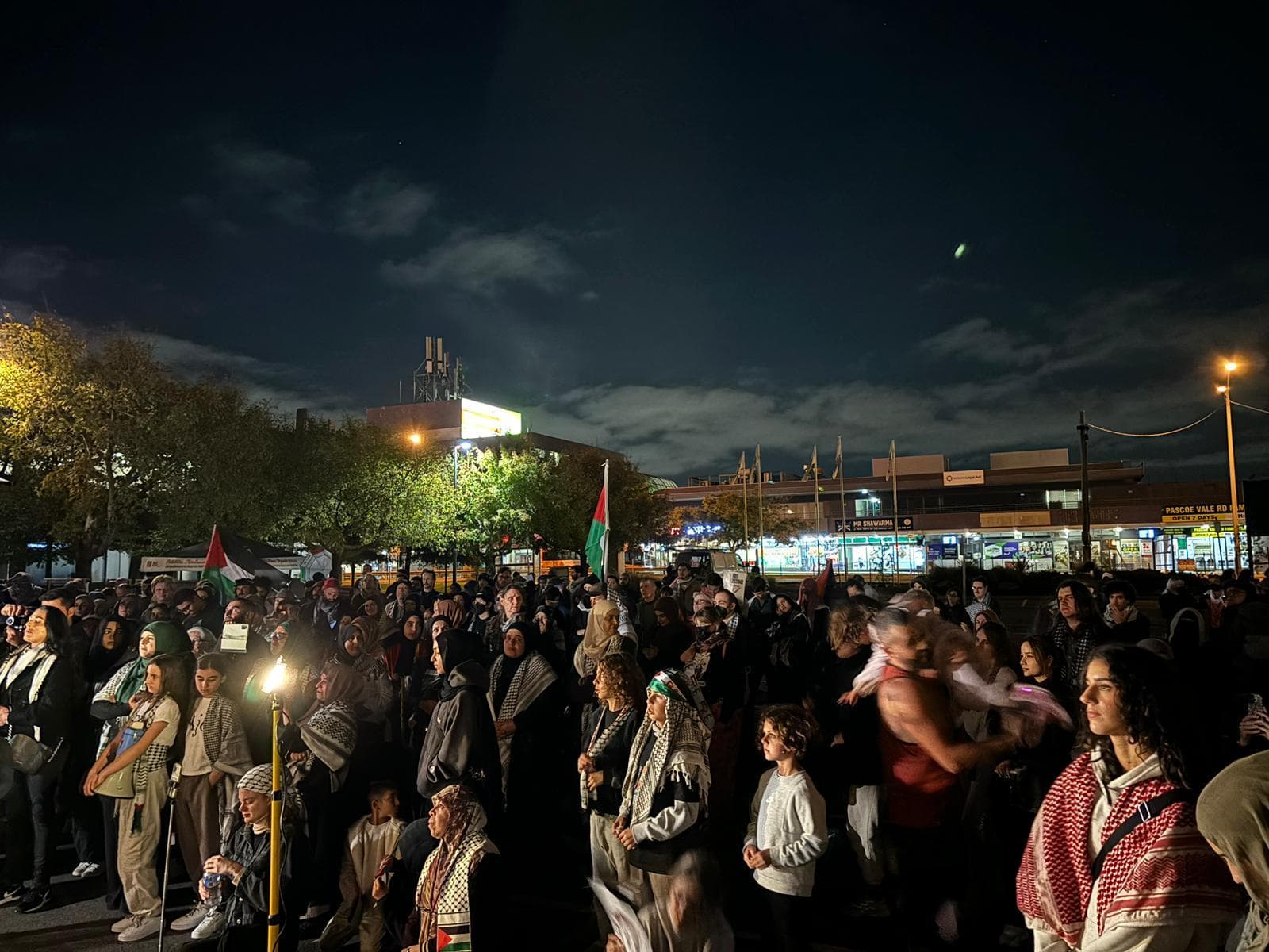 With mobile phone torches on, drums beating, and the crowd roaring “Free Palestine!”, the energy was at times electric. Students for Palestine organiser Anneke Demanuele reflected the mood when she told the crowd: “We will not stay silent when bombs are dropping on Palestine. We will not sit in class. We will fight!” The crowd agreed to return in two weeks to pressure the council to pass a motion to get weapons manufacturing out of Hume, and to continue protesting until Palestine is free.