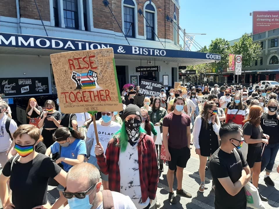 Amazing scenes have played out on Sydney’s streets today as around 500 rallied in support of trans rights, defying the New South Wales government’s attempt to ban protests. Protesters poured out of bars and side streets to assemble at Taylor Square, on the border of Darlinghurst and Surry Hills, before rushing past police lines, taking over Oxford Street and marching to Hyde Park and around the Sydney CBD.