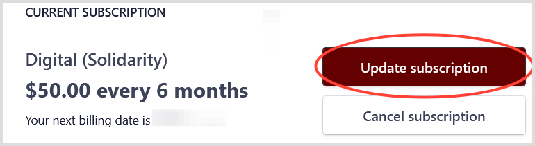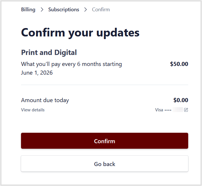 Changing from a digital subscription to a print subscription? Make sure you add/update your shipping address after changing your subscription type!